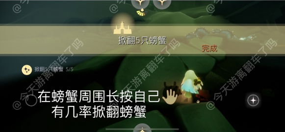 掀翻螃蟹建议去雨林第三个图,走水道会看见一个洞进去,里面的螃蟹完完全全够这次任务。虽然螃蟹看着很恐怖,但其实做任务的时候会变简单,长按自己的角色,角色会大叫,把螃蟹吓翻。