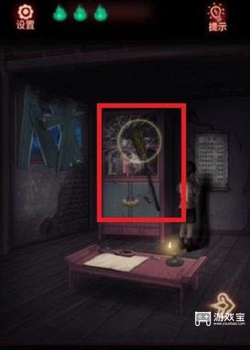 10、点击抽屉,然后在右侧抽屉就能找到一根针,然后玩家用针去划旁边的饰品就能获得一个伞饰品。