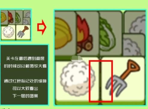 关卡在最后遇到叠层的时候可以截图放大看,通过红色标记处的缝隙可以大致看出下一层的图案