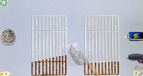 4、然后我们网格喷上除锈剂,拿钢丝球擦,再拿水枪冲,用钢丝刷刷干净即可。