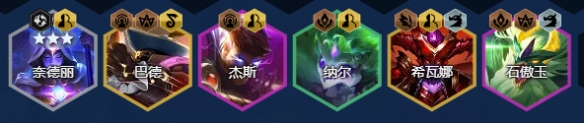 这是一套赛季初流行了一小会的阵容,现在换形(包括杰斯)获增强,可以拿出来了。