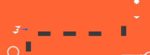 1、游戏开始向前跳,会掉到第一个黑色方块的上边的红色方块上。