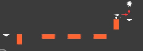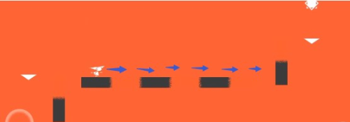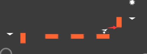 6、返回时,所有方块都成了竖直的,按照图中指示方向一直跳,就能来到黑色区域红色方块上。