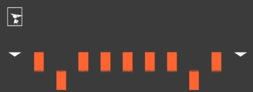 7、走过第二个方块后,每次都是踩在下面的黑色方块,向上跳到一个红色方块上接着往前去。