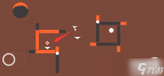 4、然后原路返回到下方的机关处,将中间的方块调整成下图2的形状。
