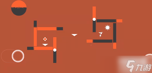 3、然后走左侧上跷跷板,一路移动到囚笼中触碰其中的机关,将中间的方块调整成图2的形状。