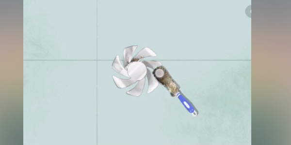 3、我们扇叶喷上清洗喷雾,拿海绵擦,拿毛巾擦干,用刷子把凹槽污渍去除。