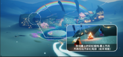 4、「找到暮土彩虹下的蜡烛」靠近暮土方舟彩虹左边尾部的大蜡烛堆(船体后面)