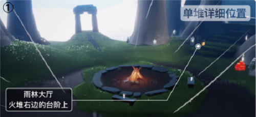 1、第一跟蜡烛在雨林大厅的火堆右边台阶上面。