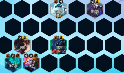 阵容组成:泰隆、布里茨(主T)、卡蜜尔、李青、乐芙兰、佐伊、佛耶戈、索拉卡