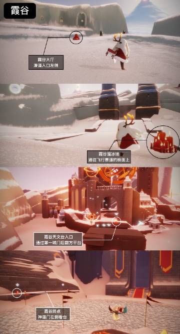 今天的蜡烛主要集中在霞谷地图中,具体位置看下图!(今天有额外的蜡烛收集任务,可以收获更多的蜡烛)