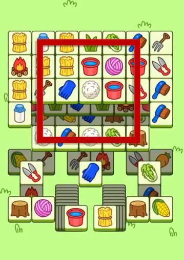 2、同层可以三消的就先消除同层 ,没有的话就需要查看下一层的物品,然后将需要的物品的上方的道具放置到槽中获得下方的道具。
