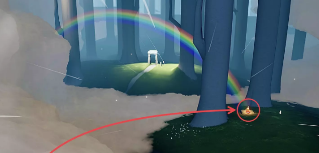 完成方法:在雨林的静谧庭院外靠近彩虹下的大蜡烛就好了