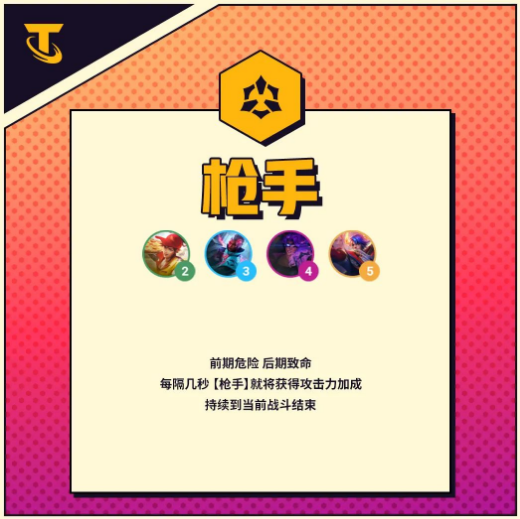 解析:传统的枪手羁绊,没有太大的改动,只是固定攻击力加成改为了百分比。