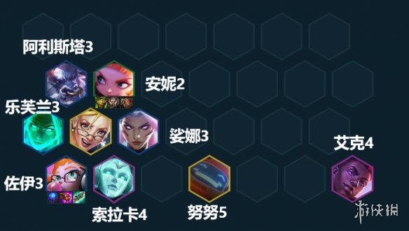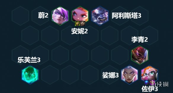 站位对于法系阵容来说非常关键,如果是打决斗劫,像图片里这样站位就好了。如果是打机甲九五,就要把安妮远离对方的蕾欧娜,可以让艾克去对着蕾欧娜。