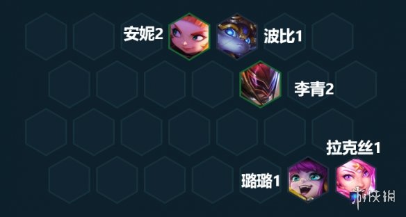 游戏前期我们可以选择安妮+波比+李青+璐璐+拉克丝组成3小天才2灵能使2爱心使者的阵容来打工,佐伊的装备给拉克丝先用来打工。肉装直接给到安妮,游戏前期我们不要过多去D牌,除了可以小D一下2星安妮之外,其他的情况都建议留着钱多升人口。因为我们这套阵容的几张核心牌都是3费,所以尽早拉到7人口,早点补足羁绊的同时也能更快抽到关键卡。