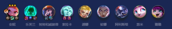 安妮为主C加主坦,通过不断叠高法强来提升护盾值和恢复量,只要能存活下来就能成为赖皮大王,后排乐芙兰补输出,后期上9口补高费卡进行补强