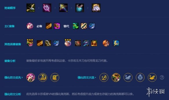 装备最好多攻速开再考虑玩这套,卡莎若无羊刀也可用青龙刀代替。