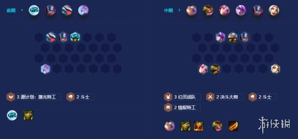 前期最好双护卫/斗士搭配艾希加原计划过度最好,尽量用2星卡过度,若能嫖到卡莎或者VN直接带装备过度,尽量保血量。