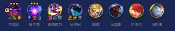 后期阶段:4-3/4-5就要跳8人口去搜2星莎弥拉,尽量去找到5费怪兽卡,像费德提克和厄加特,如果没有留瑟庄妮、拉莫斯、维克兹这些带有控制的卡牌。有3平民英雄一定上。