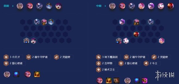 前期可以用3小天才过度,安妮,波比,露露组成,小天才前期能提供光明装备,所以战力会很强,搭配琴女和牛头,凑出2爱心秘术卫士和2福牛羁绊。到了7人口血量好的话可以挂3魔盗吃经济。