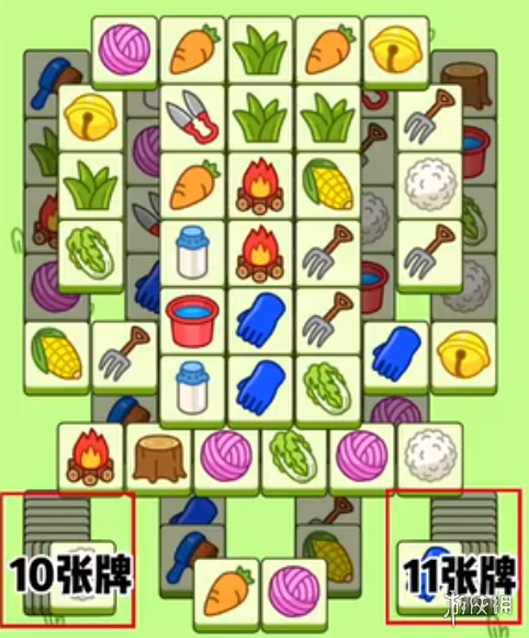 1、首先,我们来看看今天的暗牌区,它们由左边10张牌,右边11张牌组成;