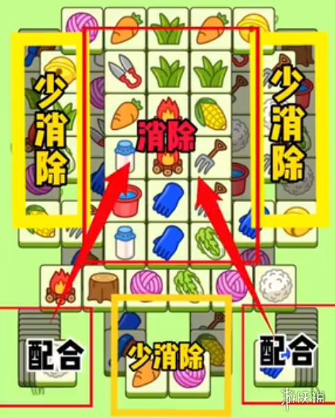 5、前期我们可以利用暗牌去配合主消区的牌来消除,辅助区我们前期尽量不动!