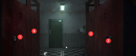 6、厕所门上的数字调整好里面牌号,这里字母是冰箱上的密码。