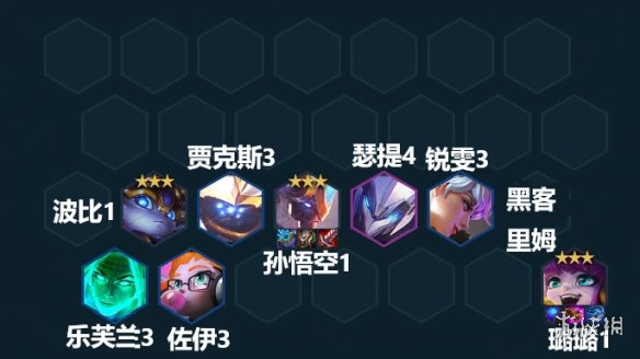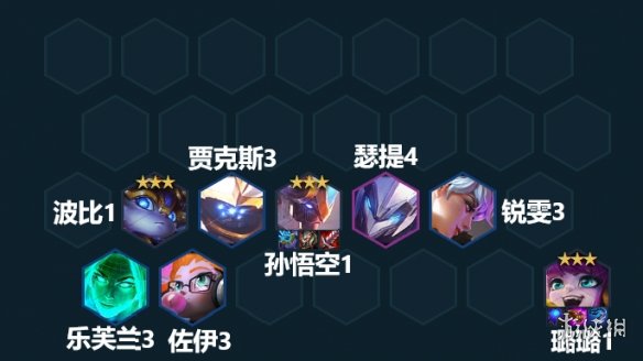 阵容组成:波比、贾克斯、孙悟空、瑟提、锐雯、乐芙兰、佐伊、璐璐