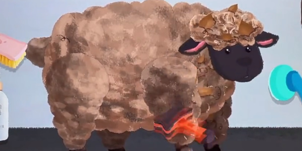 4、最后我们用红色剪刀把羊毛剪掉,用推子推羊毛,点击小羊开始撸羊毛,再用推子推干净,头顶上羊毛也要薅干净哦。