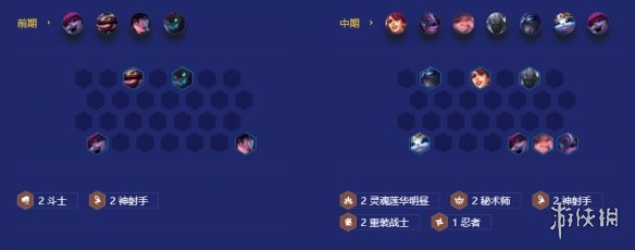 前期可以用斗士+神射手过度,遇到天选神射手也可以暂时过度上人口。