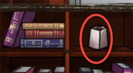 4、来的左边的书柜,根据幻灯片上的书脊颜色和图案抽出书本,书柜上方置物柜打开了