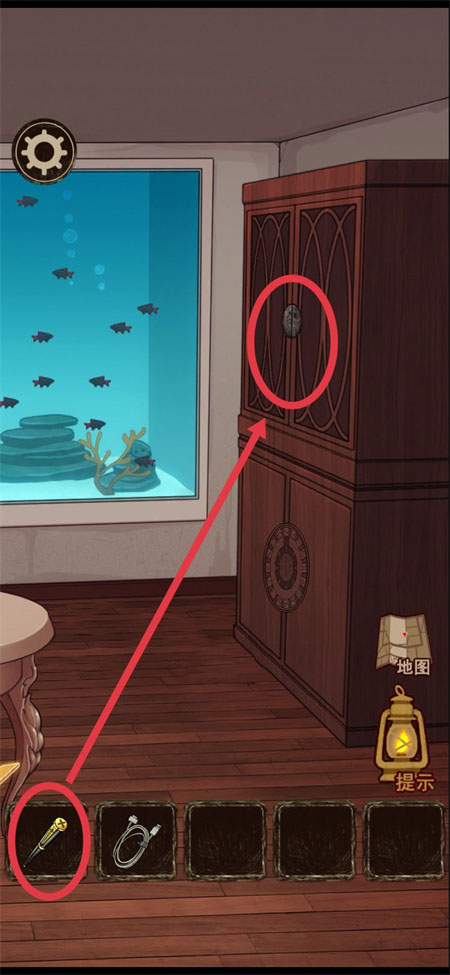 8、用钥匙打开柜子,得到螺丝刀和黑色鱼饲料