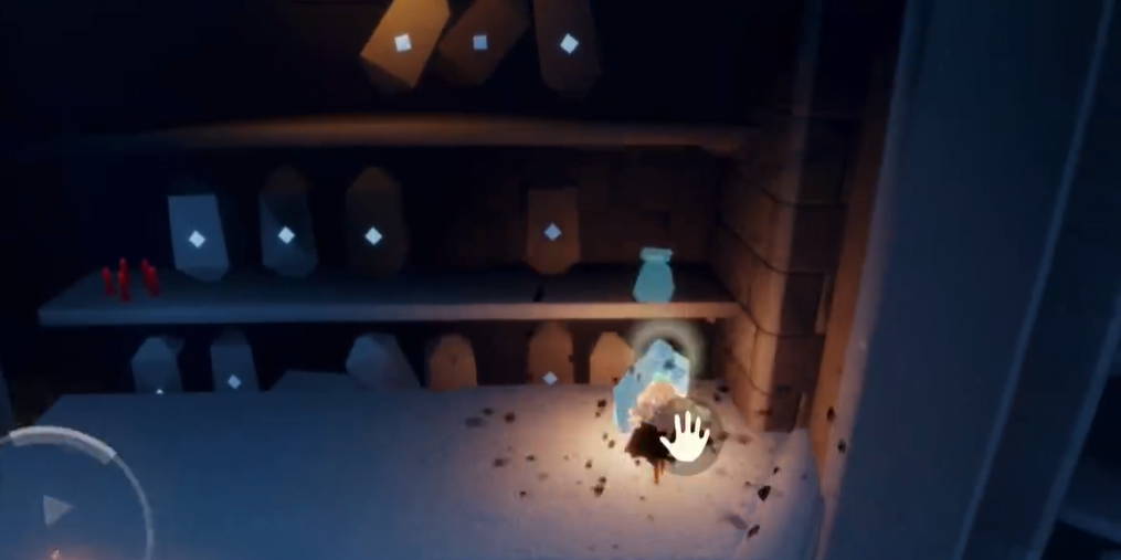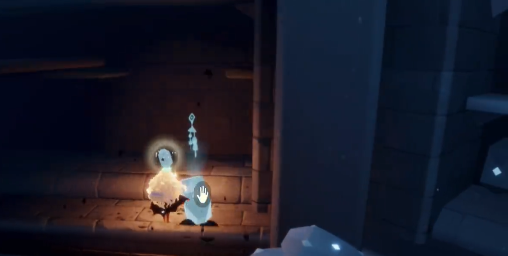 3、第一个任务的内容是收集碎片,烧掉碎片周围的花,再点击出现的手掌图标即可收取。一共有3块碎片:第一块在打坐点的旁边;第二块在第一块垂直上方的平台;视线向后转,最后一块在对面摆浮石的墙壁里。做完任务后找向导交任务即可。