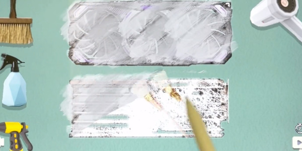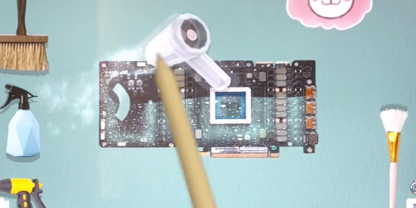 3、接着我们用喷壶清洗主板,用刷子清洁,再用水枪冲净,用吹风机吹干。