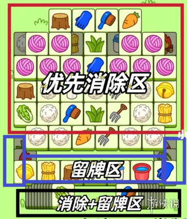 4.蓝色区域中前期尽量保留,后期再配合消除,努力每次都能和叠加区做消除,最后可以配合道具打乱顺序消除。