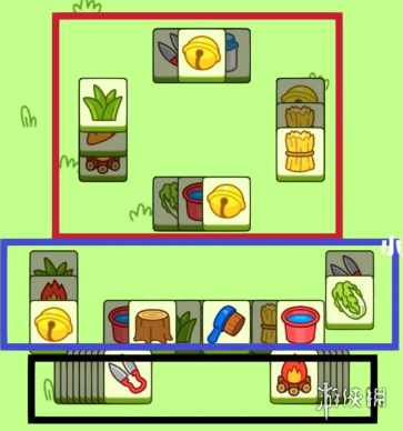 2.前期努力挖中央红色区域,最后的困难层如图二,配合隐藏牌消除