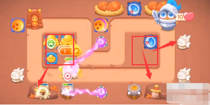 5、具体炮塔如下,出口附近放置保龄球打范围伤害,元宝和雷达各一半,宝箱里是魔法球。
