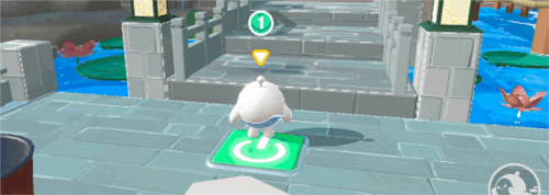 4.湖心亭还专门设有直通桥,一名蛋仔站在登桥处的按钮上,隐藏在水底的桥体就会浮出水面。