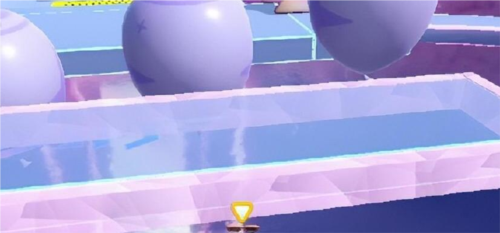这个地方两个粉色的气球夹着一个紫色的气球,可以直接跳到第一个粉色气球上飞扑到第二个粉色气球上,会被弹飞到很远的地方。