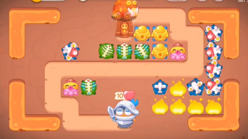 4、在左边的障碍清理之后,放置两个飞机,在章鱼的边上在补一个鱼刺。