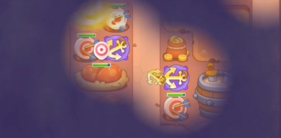 1、进入游戏后在图中的两个地方建造船锚炮塔并升级。
