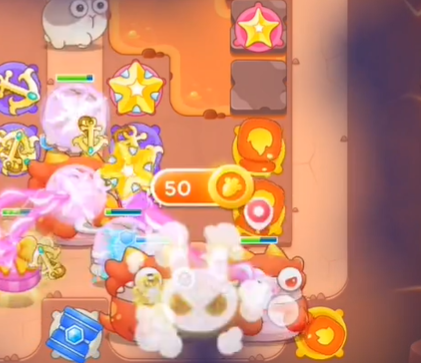 3、然后右上角建造一个星星炮塔最下面造一个冰块炮塔,左边造一个电磁炮塔。