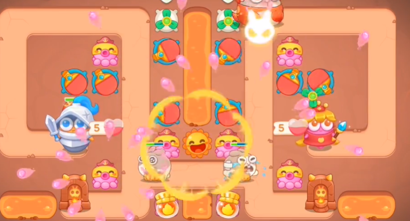2、等金钱足够后在如图所示的几个地方建造炮塔让它们一边攻击建筑一边打怪。