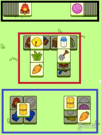 2.前期努力挖中央红色区域,最后的困难层如图二,配合隐藏牌消除