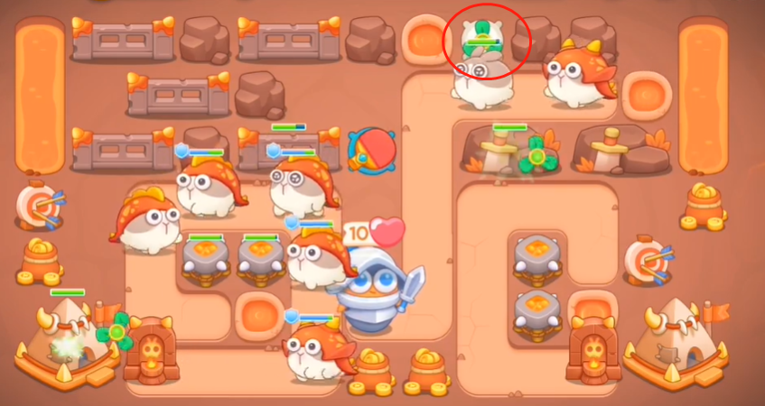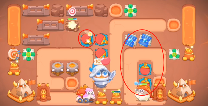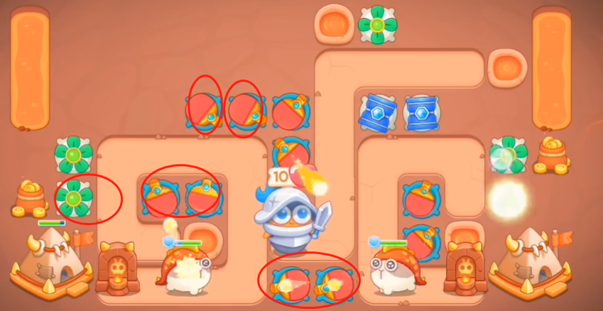 5、之后让左边的炮台将左边清理干净,获得足够钱后建造图中圈出来的这些建筑。