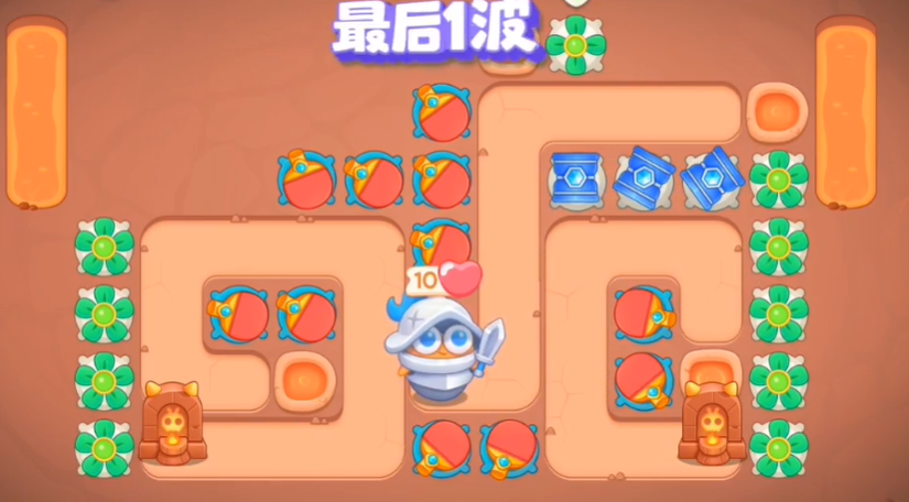 7、最后一波前的建筑如图所示,可以参考一下,然后有钱就升级炮塔就可以完成本关。