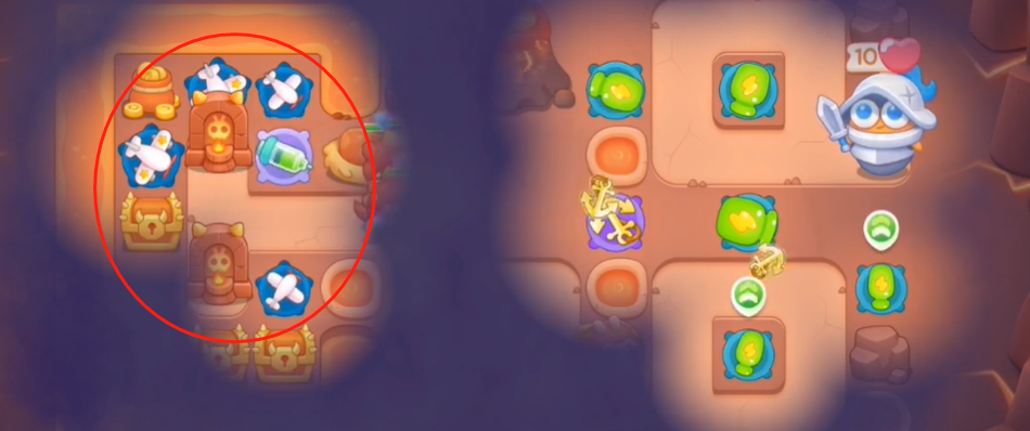 3、之后火山会喷发我们在左边建造两个炮台,右边炮台攻击中间建筑。