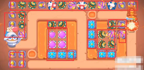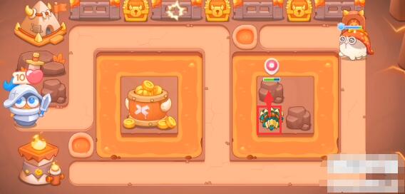 4、清完岩浆中的道具可能会有格子,在格子上放炮塔接着向上面开图。