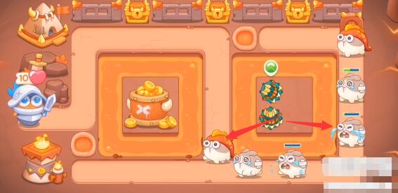2、游戏开局放多重箭用来开图,接着再将多重箭放在右边的中间位置。